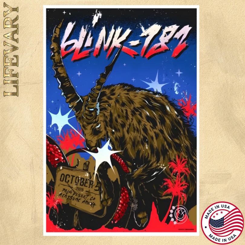 Blink 182 poster, October 5 2025, Acrisure Arena, Palm Desert, CA, concert memorabilia, music poster, collectible art, Blink 182 fan merchandise, event souvenir, limited edition print, wall decor, music memorabilia, Blink 182 concert art, exclusive poster design, commemorative keepsake, band merchandise, concert artwork, iconic music poster, Blink 182 tour collectible, special event poster