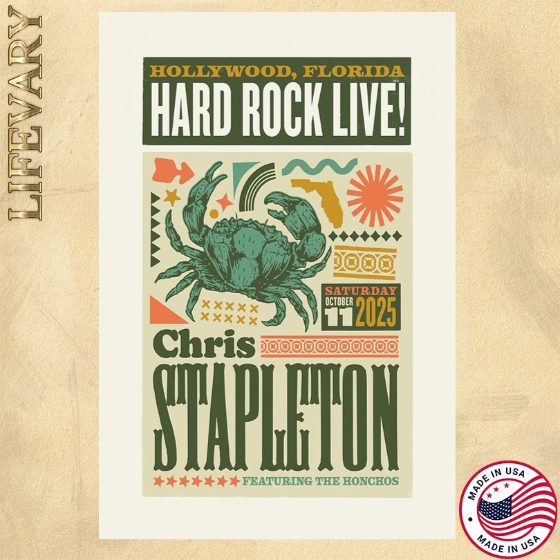 event poster, Chris Stapleton, Hollywood FL, October 11 2025, concert memorabilia, country music fan, exclusive design, vibrant colors, high-quality poster, concert experience, memorabilia collection, home decor, office decoration, music lover, collectible item, event souvenir, keepsake item, wall art, limited edition, concert merchandise