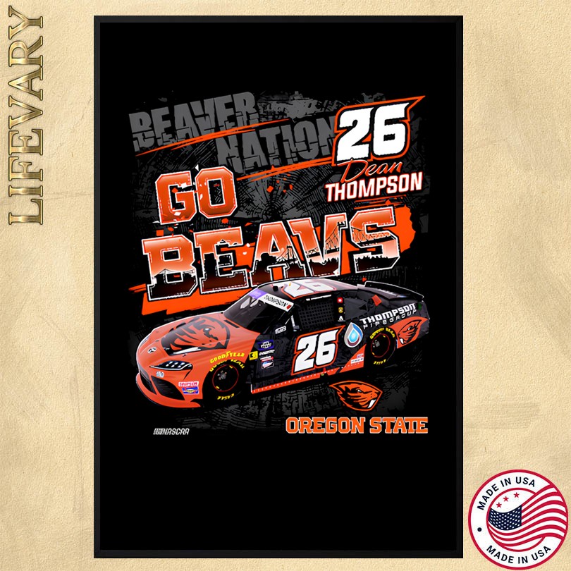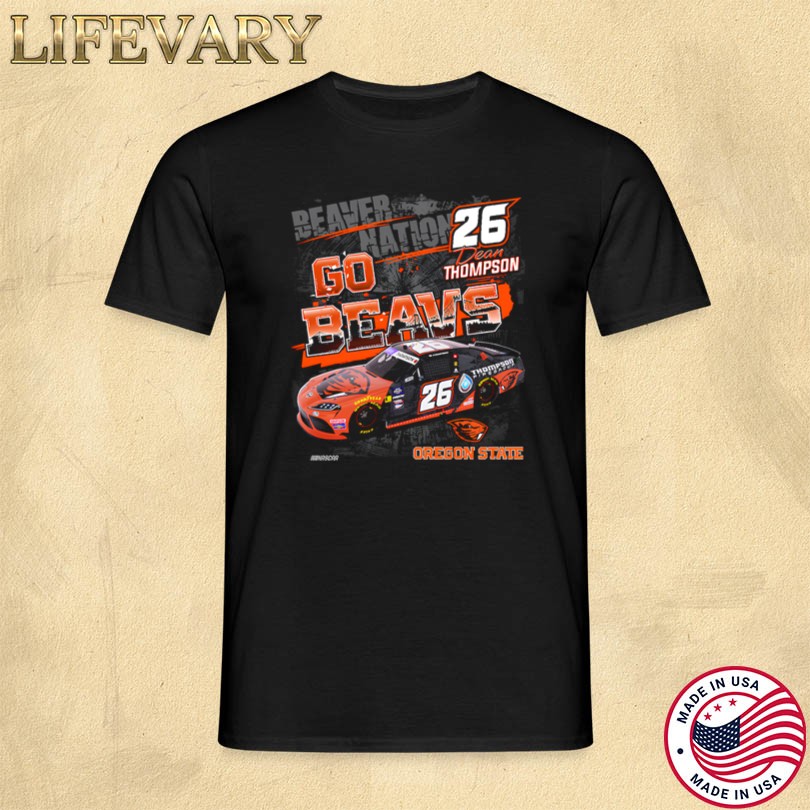 Oregon State Beavers shirt, Dean Thompson tee, Go Beaves t-shirt, Officially licensed apparel, College sports fan gear, Mascot graphic tee, Comfortable cotton blend, Crew neck shirt, Short sleeve top, Game day outfit, Oregon State University merchandise, Beavers fan apparel, Team spirit wear, NCAA licensed clothing, Casual Beavers shirt, University gift idea, College football fan gear, OSU Beavers tee, Oregon State gear.