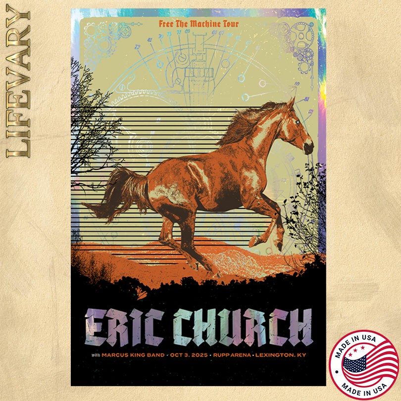 Eric Church concert poster, limited edition, October 3 2025, Lexington KY, country music, fan memorabilia, collectible print, vibrant colors, wall art, music poster, Eric Church performance, concert memorabilia, country music artist, exclusive design, event souvenir, home decor, music fan gift, artistic poster, concert keepsake, unique artwork.