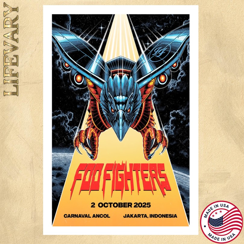 Don’t miss out on the limited edition Foo Fighters Jakarta, Indonesia concert event poster featuring the unforgettable show on October 2, 2025. This exclusive poster captures the essence of the epic performance, making it a must-have for any die-hard fan or collector. The vibrant design and high-quality printing ensure that this poster will be a standout piece in your memorabilia collection. Bring home a piece of rock history and relive the magic of that electrifying night every time you glance at this stunning poster hanging on your wall.