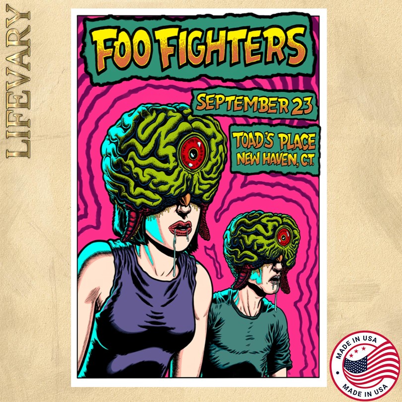 Foo Fighters concert poster, Toad’s Place, September 23 2025, exclusive design, vibrant imagery, bold typography, high-quality paper, memorabilia, music history, Foo Fighters fan, poster collector, live music, special night, concert memorabilia, rock band poster, collectible item, limited edition, music poster design, concert memento.