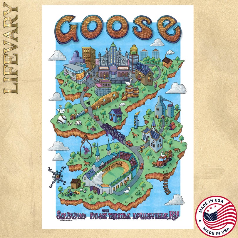 Goose concert poster, Louisville Palace Theatre, September 23-24 2025, music memorabilia, collectible poster, live performance art, band merchandise, event souvenir, vibrant design, high-quality print, music lover gift, wall decor, limited edition poster, Goose band merchandise, concert memorabilia, exclusive poster, music fan collectible, band concert art, artistic poster design, memorable event keepsake.