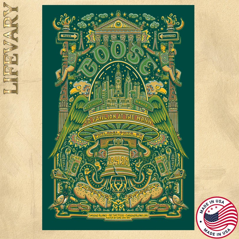 Goose concert poster, Mann Center event, October 4 2025, exclusive design, high-quality printing, music memorabilia, limited edition, collectible item, fan merchandise, wall decor, concert keepsake, vibrant artwork, live performance memento, Goose band poster, music fan gift, commemorative piece, concert souvenir, decorative wall art, unique design
