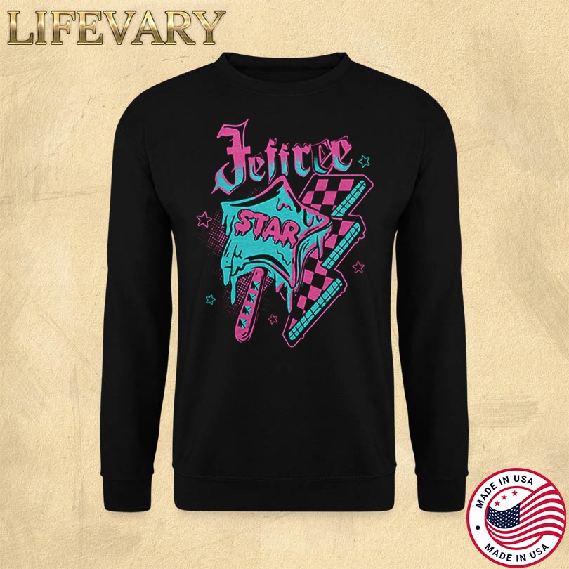 Elevate your style with the Jeffree Star Popsicle & Thunderbolt T-Shirt. This edgy yet trendy t-shirt features a unique design showcasing Jeffree Star’s iconic symbols – the popsicle and thunderbolt. Made from high-quality cotton, this shirt offers both comfort and fashion-forward appeal. Whether you’re a fan of Jeffree Star or simply love eye-catching graphics, this t-shirt is a must-have addition to your wardrobe. Perfect for casual outings or lounging at home, it pairs effortlessly with jeans or shorts for a laid-back yet stylish look that’s sure to turn heads.