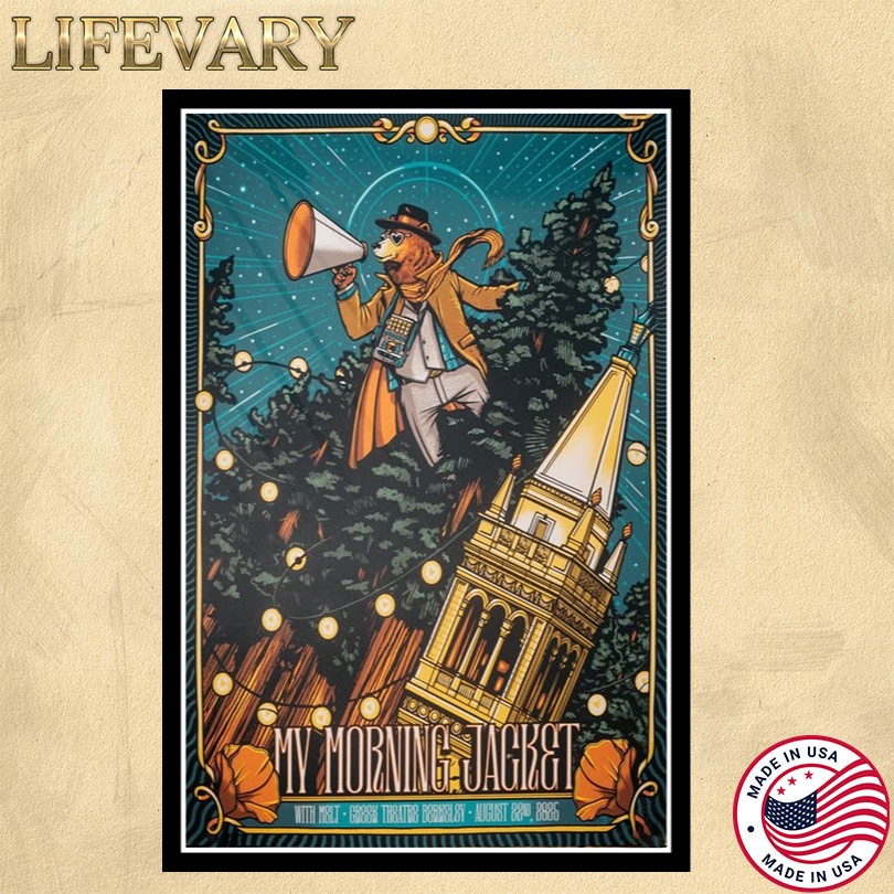 morning jacket concert poster, august 22 2025, the greek theatre berkeley, ca, my morning jacket memorabilia, limited edition music poster, collectible band merchandise, concert keepsake wall art, exclusive event artwork, my morning jacket fan collectibles, music memorabilia collectibles, commemorative concert poster, band performance souvenir, musical history decor, collectible tour poster, my morning jacket merchandise, band concert memorabilia, music fan gift idea, rare concert poster print, my morning jacket tour merchandise, band concert poster art