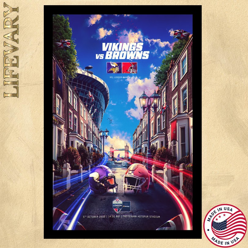 Vikings vs Browns poster, NFL teams merchandise, London game collectible, October 5 2025 memorabilia, exclusive sports poster, football fan decor, team rivalry art, limited edition print, Vikings vs Browns merchandise, NFL game day poster, sports memorabilia collection, unique football poster, team pride decoration, collectible sports art, game day keepsake, football fan gift, sports event commemorative poster, NFL rivalry memorabilia, London sports collectible.